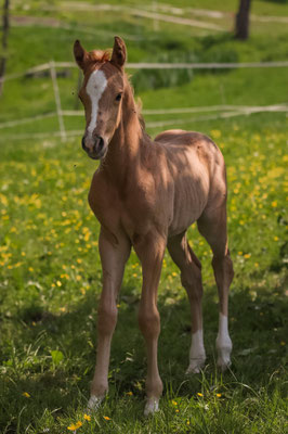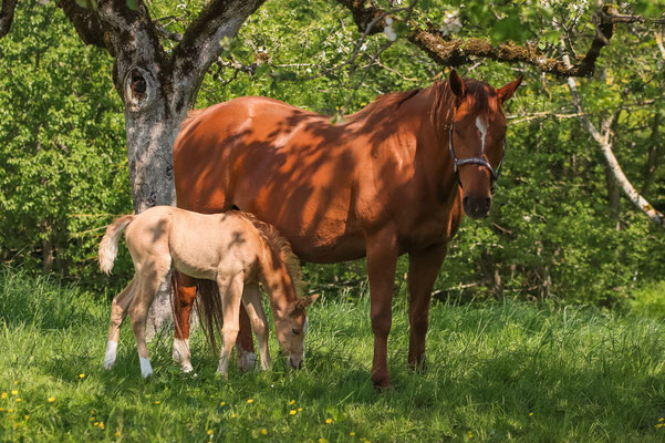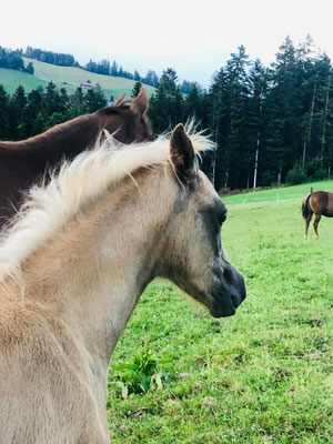 Am Ostersamstag bekam Barahni ihr erstes Fohlen "Bellissima" von Cadlanvalley Sir Ivanhoe. Das wunderhübsche Palominostütchen ist sehr zutraulich und wird eine Grösse von ca. 1.45-1.48 m erreichen.
